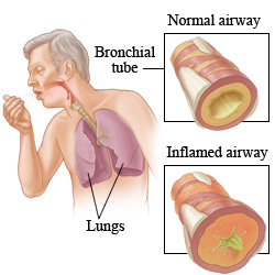 - इसे आमतौर पर अस्थमा के दौरे के रूप में जाना जाता है।